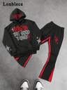 Lonblece 1 pieza Sudadera con capucha estampada con cruz y lavado ácido para hombre, otoño/invierno