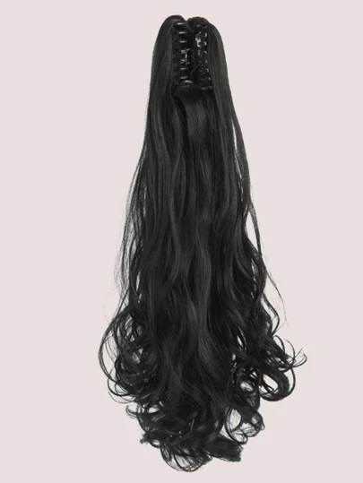 Cola de caballo con clip de cabello castaño largo y rizado, peluca de extensión de cola de caballo sintética - Negro - Añade 1