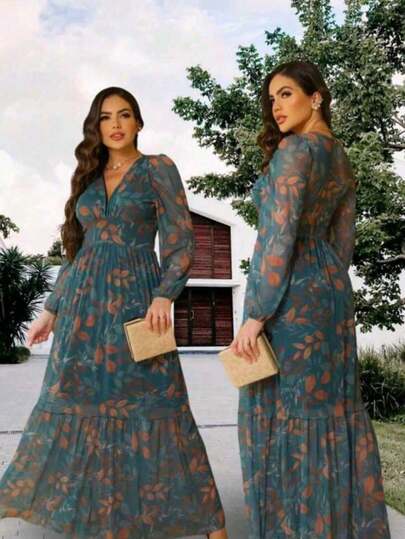 Long Sleeve V-Neck Dress With Padded Back And Lining - Verde - Añade 1