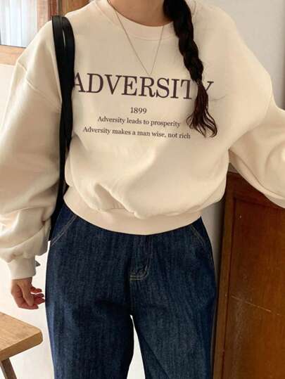 DAZY Sudadera de corte holgado con estampado de eslogan, ropa de otoño - Albaricoque - Añade 5