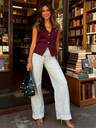 Suéter de punto casual y elegante con cuello en V, mangas acampanadas y borde ondulado - Estilo coreano con volantes, corte ceñido, para otoño e invierno