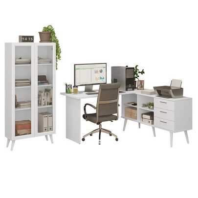 Escritorio en L con Armario con Vidrio Madesa Blanco - Blanco - Añade 3