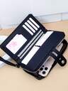 MINGYOU Cartera de teléfono portátil casual de material suave y de alta gama con bordado de moda, negra. Cartera de mujer con cremallera adecuada para compras, cumpleaños, Navidad, Acción de Gracias, cartera de mujer retro, embrague, cartera larga, muñequera
