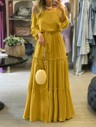 Mono informal de unicolor con volantes y perlas en el bajo, adecuado para la oficina y el uso diario