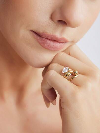 MOTF PREMIUM Anillo Único Personalizado Lineal Retorcido Revestido En Oro De 18k Con Circonias - Amarillo Oro - Añade 3