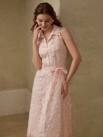 MOTF PREMIUM Vestido con cinturón con bordado floral - Rosa - Añade 4