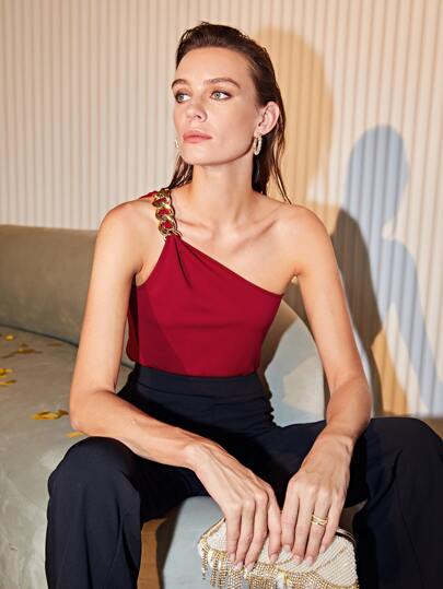 MOTF PREMIUM Top con cadena de un hombro - Burdeos - Añade 1