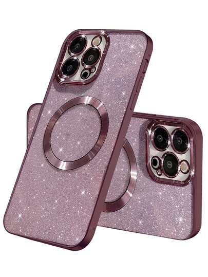 Hadaasi Funda de teléfono ultrafina compatible con Apple 17 Pro/17 Pro Max/17 Air/17/16 Pro/16 Pro Max/16 Plus/16/15 Pro/15 Pro Max/15 Plus/15/14 Pro/14 Pro Max/14 Plus/14/13 Pro/13 Pro Max/13/12 Pro/12 Pro Max/12/11 Pro Max/11/11 Pro y Galaxy S24 Ultra/S24 Plus/S24/S23 Ultra/S23 Plus/S23/S22 Ultra/S22 Plus/S22, de color púrpura oscuro, con adsorción magnética, con incrustaciones de piedras rhinestone y protector de lente incorporado - Morado - Añade 3