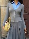 MainGRL Conjunto estilo universitario tejido en color caqui para mujer