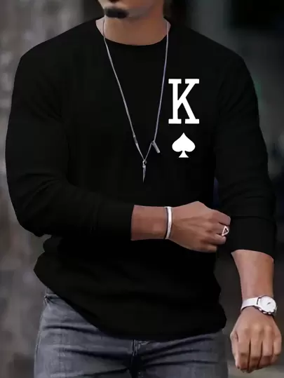 Manfinity Homme Camiseta de hombres con patrón de póker con estampado - Negro - Añade 1