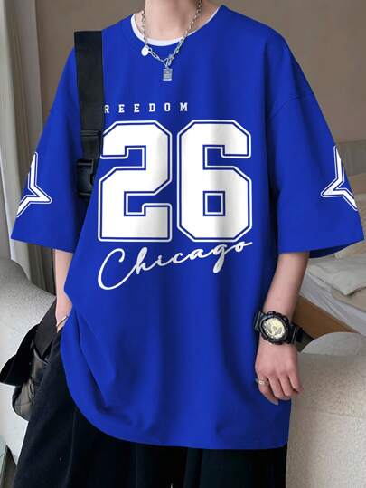Claim Dot Camiseta holgada de hombre con gráfico de letra y hombros caídos - Azul - Añade 1
