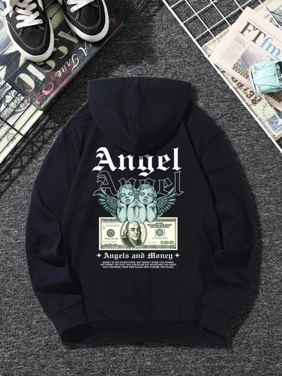 Manfinity Hombres Capucha con slogan con con estampado de figura - Negro - Añade 5