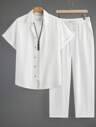 GENTILAND Set de 2 conjuntos casuales de verano para hombres con camisa Guayabera retro perforada y ligera