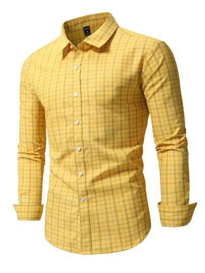 Manfinity Mode Camisa de hombre con estampado de cuadros, para otoño, top de manga larga - Amarillo - Añade 5
