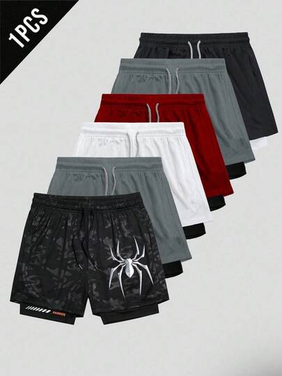 Manfinity Sport Corelite Pantalones cortos deportivos de hombre con estampado de araña y cordón en la cintura, pantalones cortos negros - Negro - Añade 4