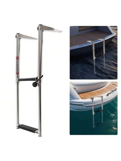 Marine 2-Step Boat Telescoping Ladder, Docks 270° Rotatable Telescoping Ladder, Stainless Steel Boat Floding Ladder, Swimming Pool Wall Mounted Stainless Steel Ladder - Plateado - Añade 1