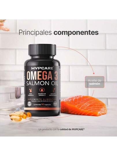 Omega 3 1280mg por cápsula aceite de salmón EPA DHA 90 cápsulas 3 meses fish oil pureza premium cardiovascular metabolismo salud antioxidante vitalidad - Otros - Añade 6