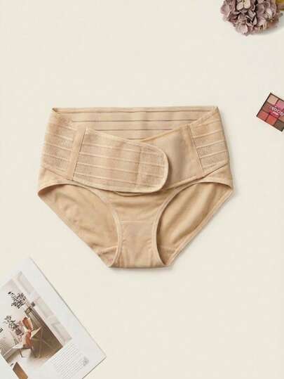 Pantaletas para embarazada cintura alta estilo sencillo diseño de soporte algodón transpirable ajuste cómodo talle medio para todas las estaciones uso diario pantaleta de maternidad - Desnudo - Añade 3