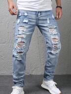 Jeans con rhinestones para hombres, pantalones rectos sueltos y de moda con rhinestones tipo novio, pantalones vaqueros clásicos azules casuales, pantalones de calle