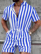 Conjunto de dos piezas para hombre de camiseta de manga corta con cuello redondo y pantalones cortos con cordón de ajuste