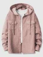 DAZY Chaqueta con capucha de tela esponjosa bordada marrón para hombre en otoño