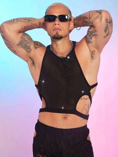FeverCity Camiseta sin mangas de malla entallada transpirable para hombre, adecuada para el verano - Negro - Añade 1
