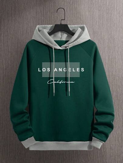 Manfinity Dauomo Sudadera con capucha casual de mangas raglán con bloques de color para hombres, apta para otoño/invierno - Verde Oscuro - Añade 1