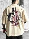 Manfinity EMRG Camiseta casual de manga corta de cuello redondo con estampado de letras de hombro caído para hombre, verano