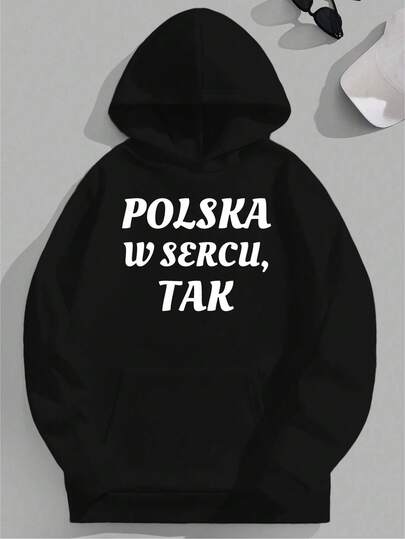 Sudadera con capucha gráfica de corazón de Polonia para hombres, casual, negra, de manga larga, con impresión en negrita POLSKA W YERKOW, TAK, ajuste holgado, cómoda, ropa casual elegante, transferencia de calor digital, para todas las estaciones, perfecta para hombres. La mejor opción para regalos de vacaciones. - Negro - Añade 10