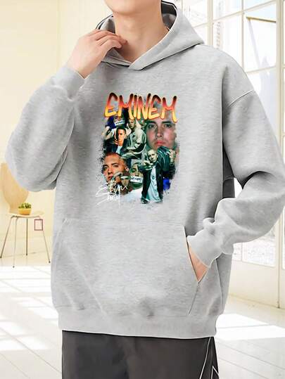 Los hombres combinan ropa protectora con capucha.Sudadera con capucha gris con estampado de  y texto en estilo artístico para uso diario ocasiones sociales y temporada fría Combinar  de salida, regalos de vacaciones - Gris - Añade 6