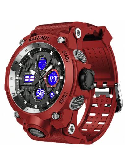 Reloj Deportivo Para Hombre Resistente Al Agua Con Doble Zona Horaria Y Estilo Táctico - Rojo - Añade 5