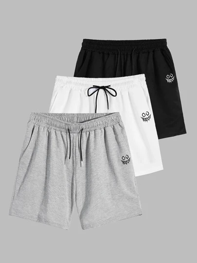 Manfinity Hypemode Hombres 3 piezas Shorts deportivos de cintura con cordón - Multicolor - Añade 3