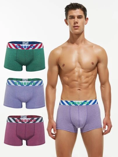 Hombres 3 piezas Calzoncillos boxer con estampado de letra - Multicolor - Añade 1