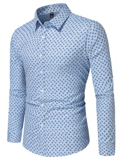 Manfinity Mode Hombres Camisa con estampado con botón - Celeste - Añade 4