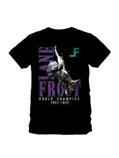 Camiseta de campeón mundial de rodeo de toros prca Lane Frost Four Seasons Fashion Nueva camiseta Lane Frost The Last Ride Camiseta de manga corta para hombres y mujeres 220g - Negro - Añade 1
