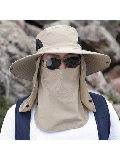 Sombrero de Sol para Hombre, Gorro Pescador Ajustable con Protección UPF 50+, Sombrero con Asa Ancha y Máscara Desmontable para Cara y Cuello,Sombrero de Pesca, Gorra para Sol con Protección Solar UPF 50 Gorro de Pesca con Cubierta Facial Extraíble y Solapa para Cuello, Sombrero Tipo Pescador de Ala Ancha para Pesca Senderismo Hombre Mujer - Beis - Añade 11