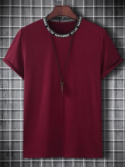 Manfinity Hombres Camiseta en contraste con cinta con letra - Burdeos - Añade 4