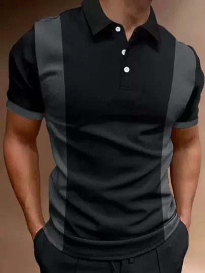 Manfinity Homme Hombres Camisa polo panel en contraste - Negro - Añade 5