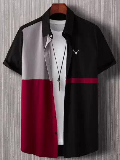 Manfinity Homme Hombres Camisa alce con bordado de color combinado sin camiseta - Multicolor - Añade 1