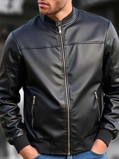 Chamarra Tipo Biker para Hombre Vinipiel con Botón Afelpada por Dentro - Negro - Añade 2