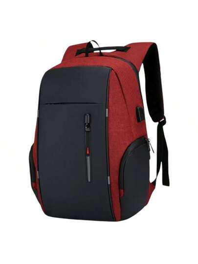 Mochila CASUAL Para Laptop 15.6 Pulgadas Para Hombre Con Usb Y Puerto Para AudíFonos Impermeable Antirrobo Para Portátil,  De Viaje, Negocios O Escolar - Rojo - Añade 1