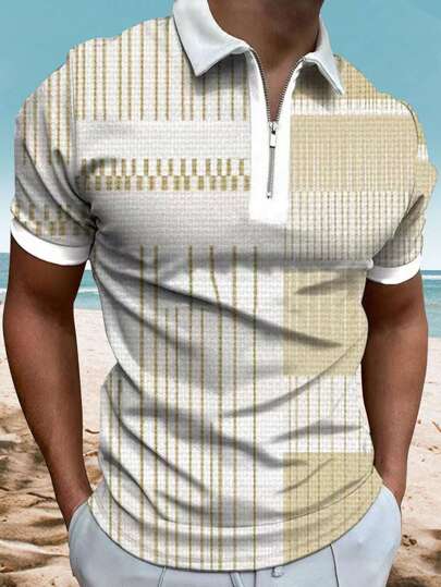 Hombres Camisa polo con estampado geométrico - Caqui - Añade 1