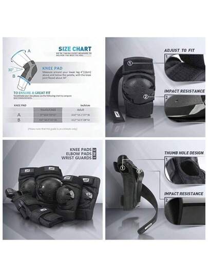 Rodilleras, coderas y muequeras para deportes y actividades al aire libre ajustables para patinaje, ciclismo y ejercicios Accesorios de proteccin para deporte y ejercicios al aire libre Rosa - Negro Chico - Añade 6