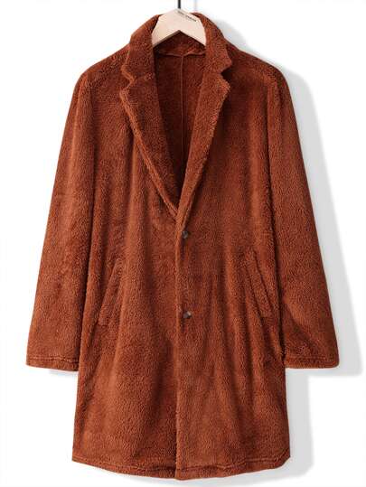 Manfinity Hombres Abrigo teddy de cuello con solapa con botón delantero - Óxido marrón - Añade 3