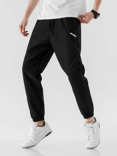 Manfinity Hombres Pantalones con estampado de letra de cintura con cordón - Negro - Añade 1