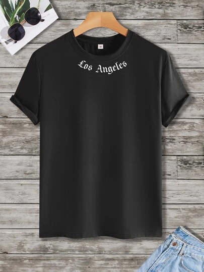 Manfinity Homme Hombres Camiseta con estampado de letra - Negro - Añade 1