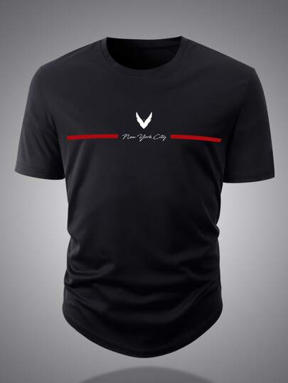 Manfinity Homme Hombres Camiseta con estampado de letra - Negro - Añade 3