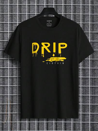 Hombres Camiseta con estampado de letra - Negro - Añade 1