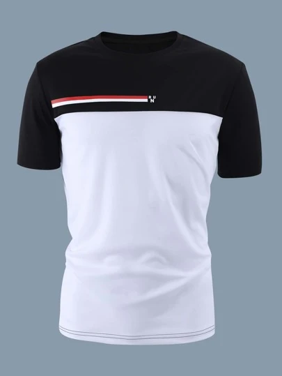 Manfinity Homme Hombres Camiseta con estampado de letra y rayas - Blanco y Negro - Añade 4