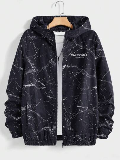 GENTILAND Chaqueta con capucha de ajuste suelto para hombres con estampado de mármol y letras (sin camiseta) - Negro - Añade 1